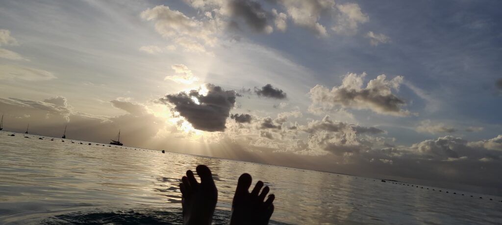 J’ai finit la journée par la plage du Souffleur et une première baignade des vacances. Enfin ! J’ai même apprécié un très joli couché de soleil.